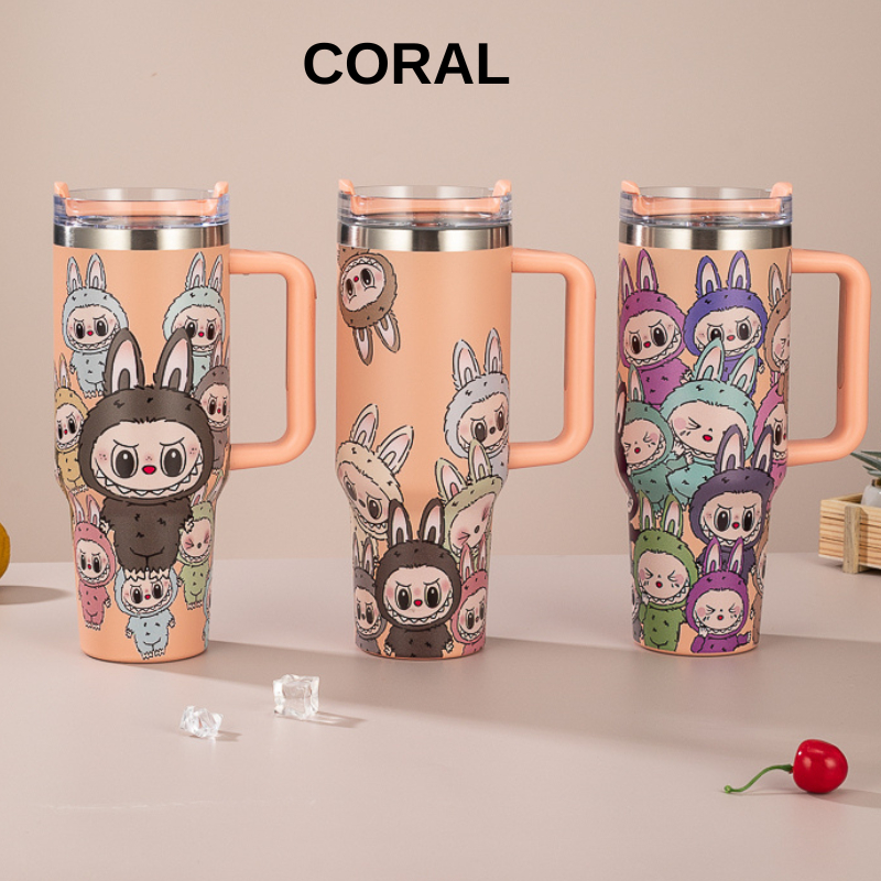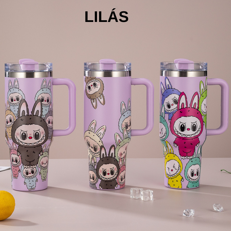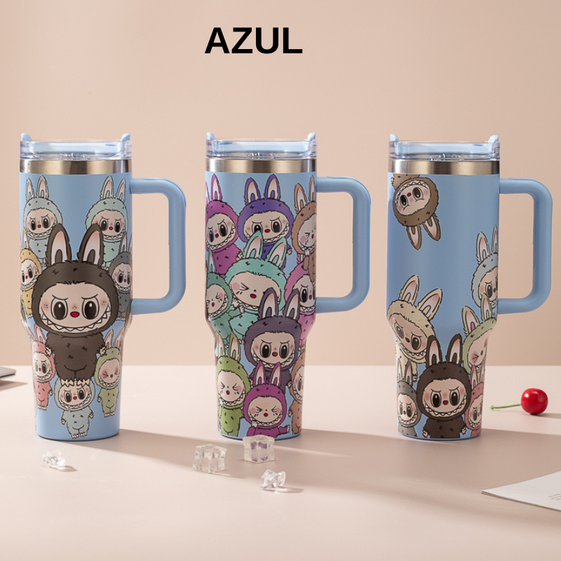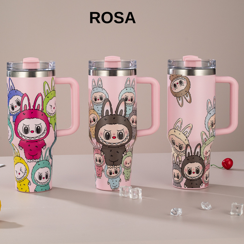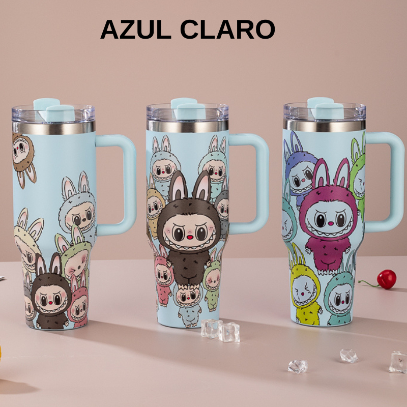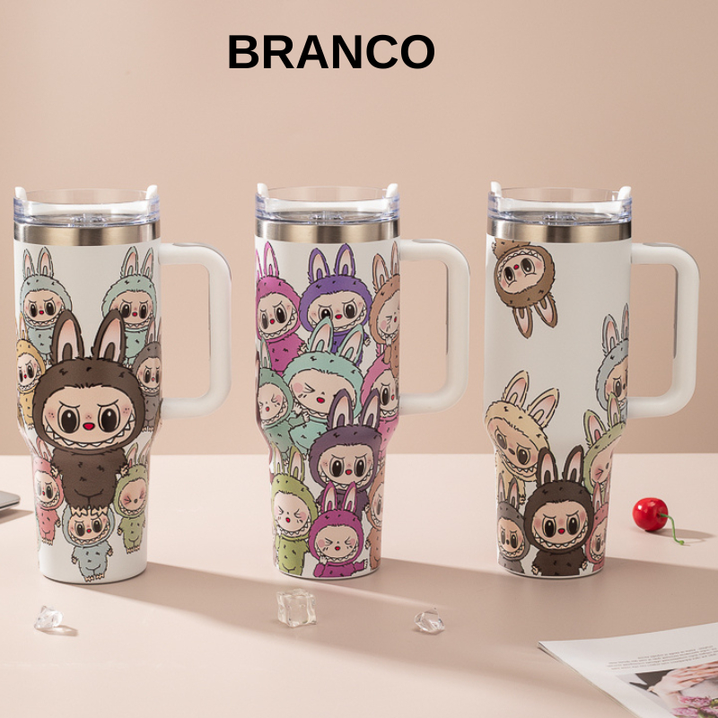Com estampa fofa inspirada em personagens de cartoon, esta garrafa térmica une praticidade, capacidade e design divertido para acompanhar sua rotina.
