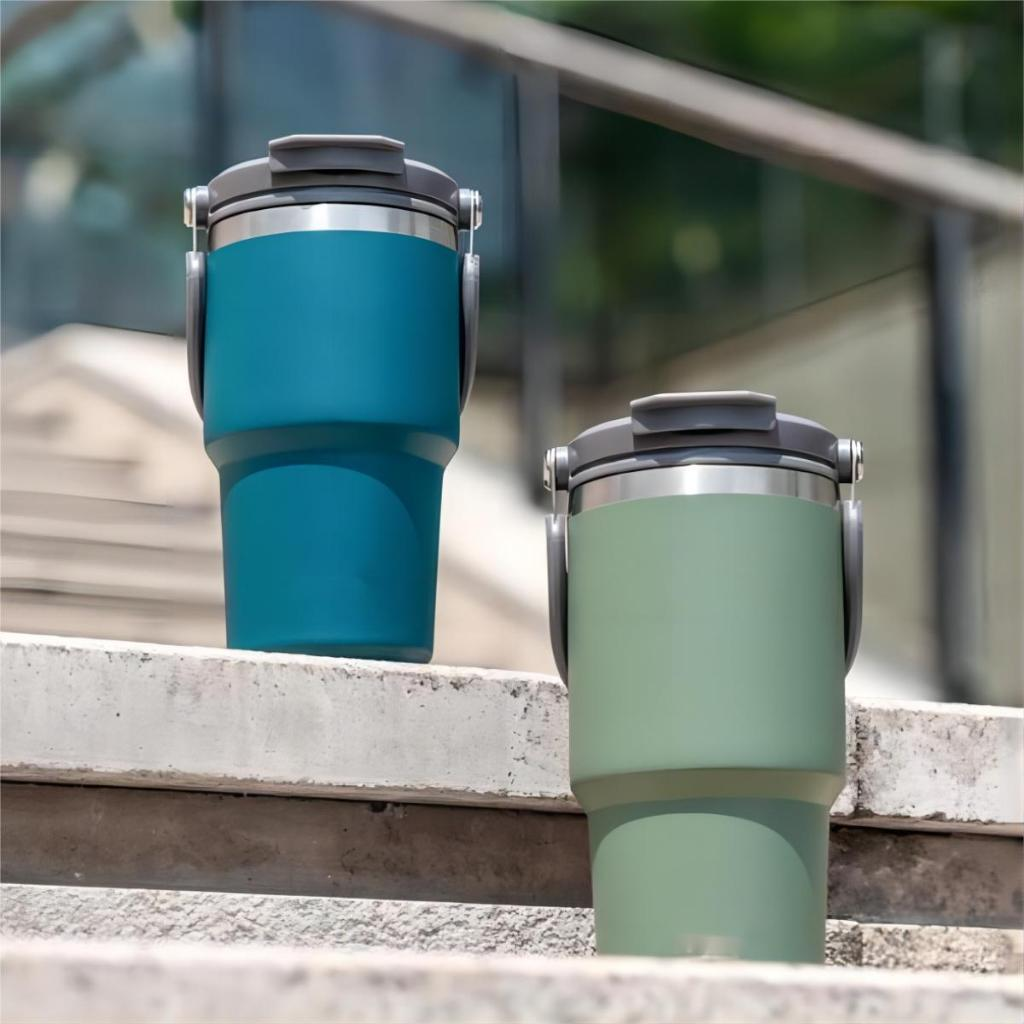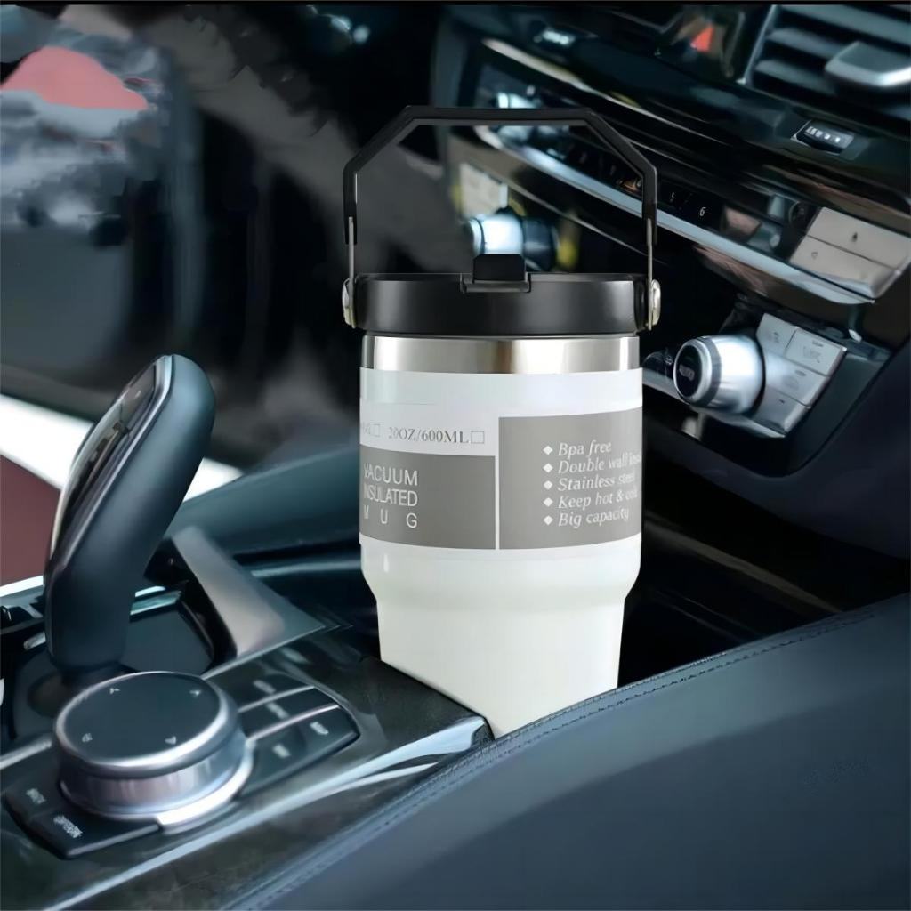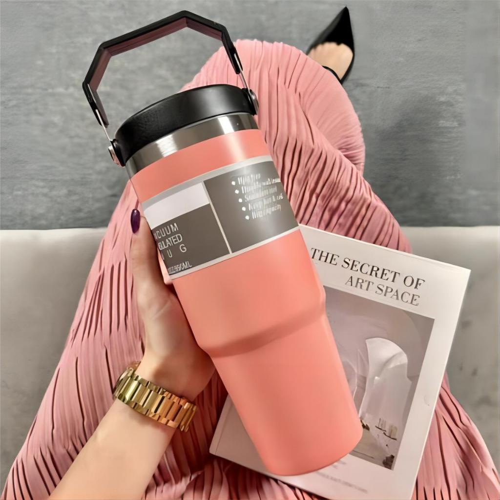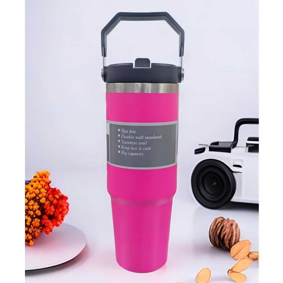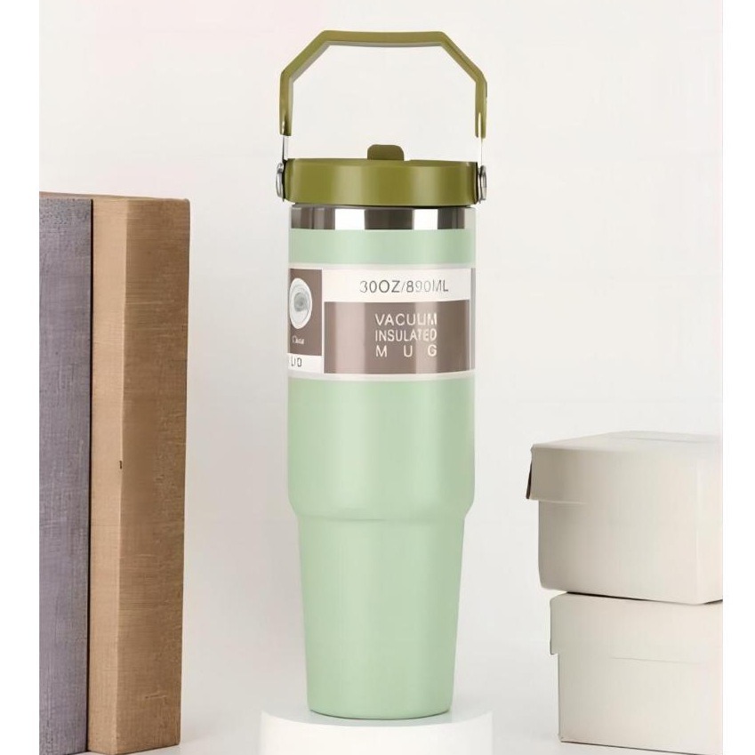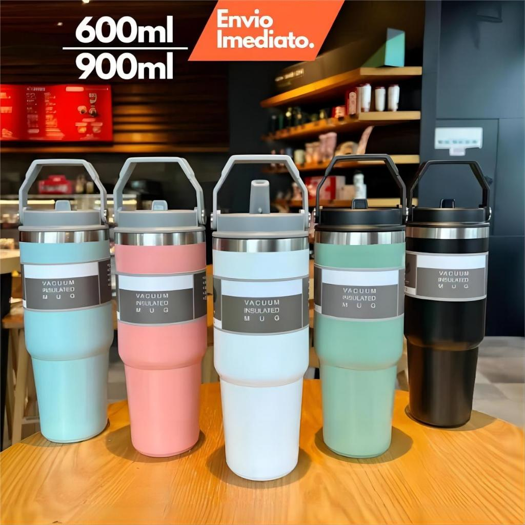 - 01 (uma) Garrafa Térmica Copo Caneca De Aço Inoxidável Com Canudo e Alça Parede Dupla 900ml