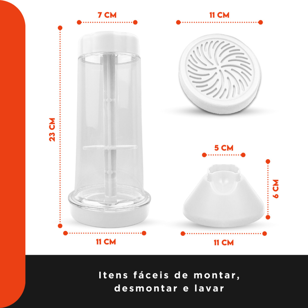 -Dimensões: 7 cm x 11 cm x 23 cm, compacta e fácil de armazenar.