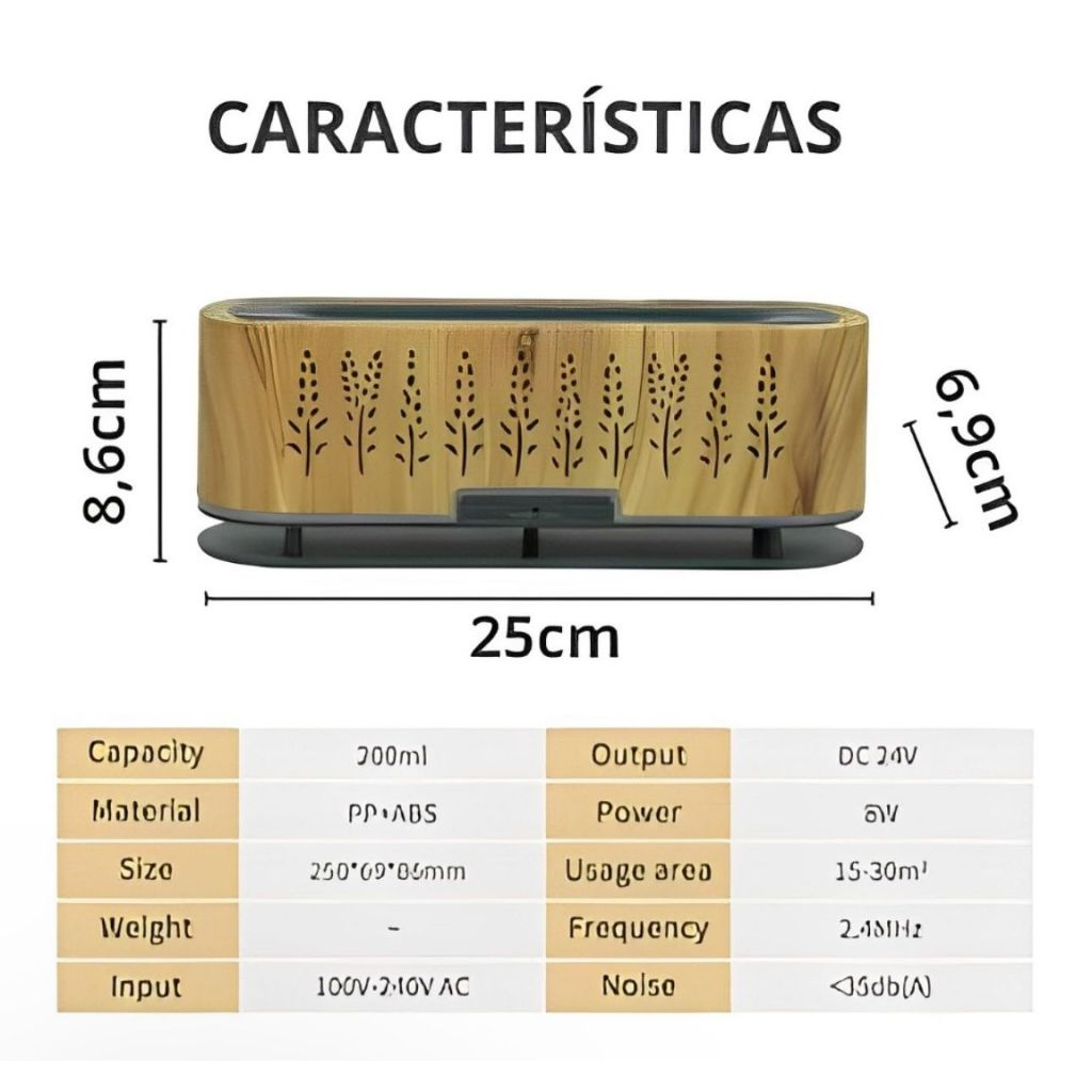 Umidifica e purifica o ar, com capacidade máxima de 200ml, você pode colocar gotas de óleos essenciais na água (ou perfume do seu agrado, apenas algumas gotas são suficientes).