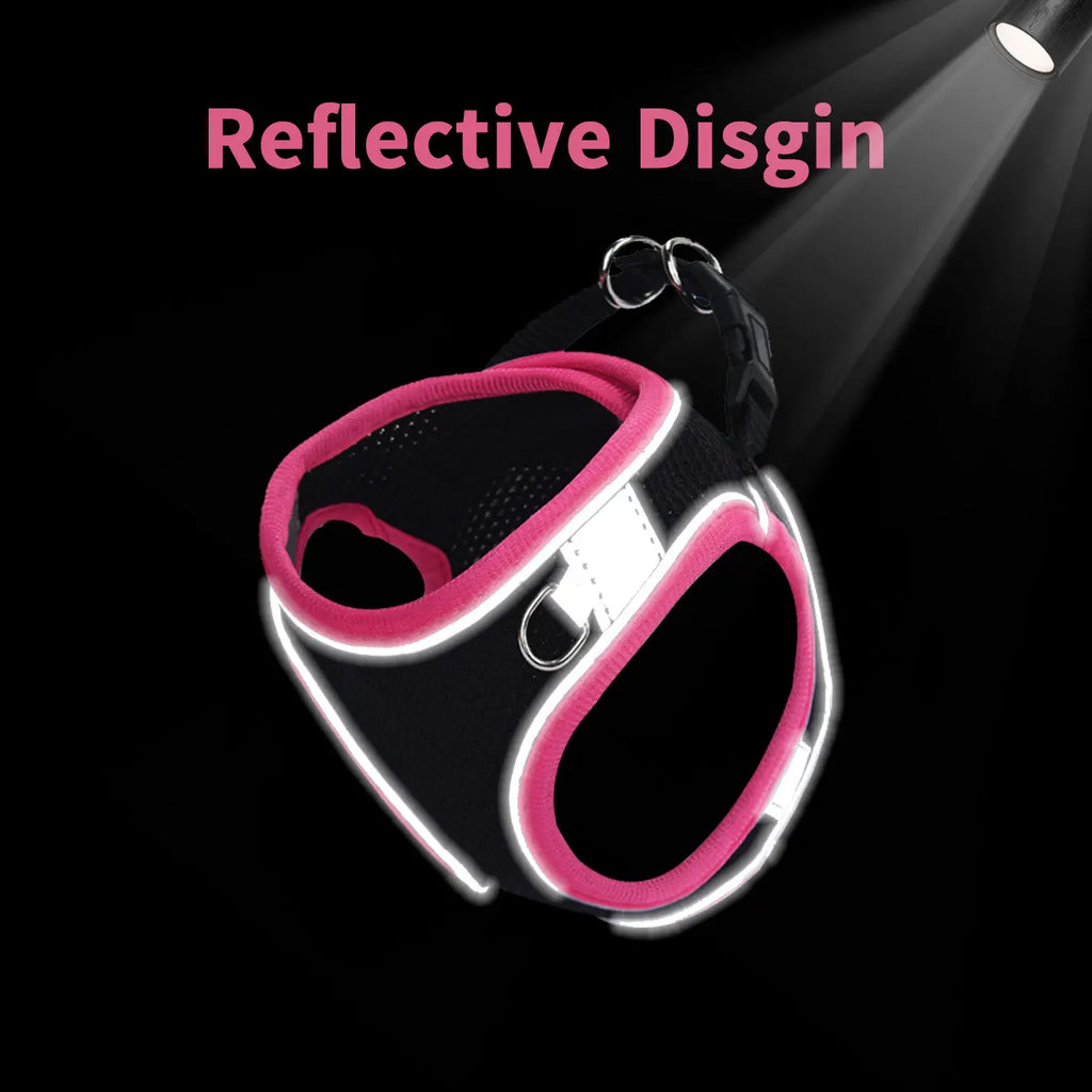 Colete ajustável HP199--1pc para cães e gatos, tecido de malha preto e respirável com cobertura de borda colorida.