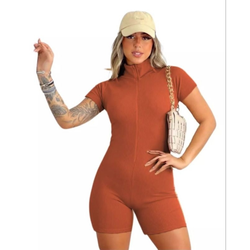 Macaquinho Gringo em tecido 3D elastic tecido encorpado que modela seu corpo e com aquele zíper jacaré
